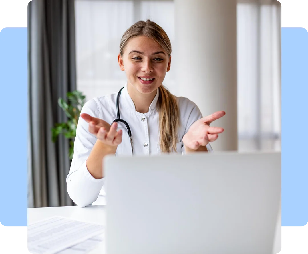 In einer Videosprechstunde besprechen Sie Ihre Symptome mit einem Arzt, der Ihre Situation bewertet und eine erste medizinische Einschätzung gibt.